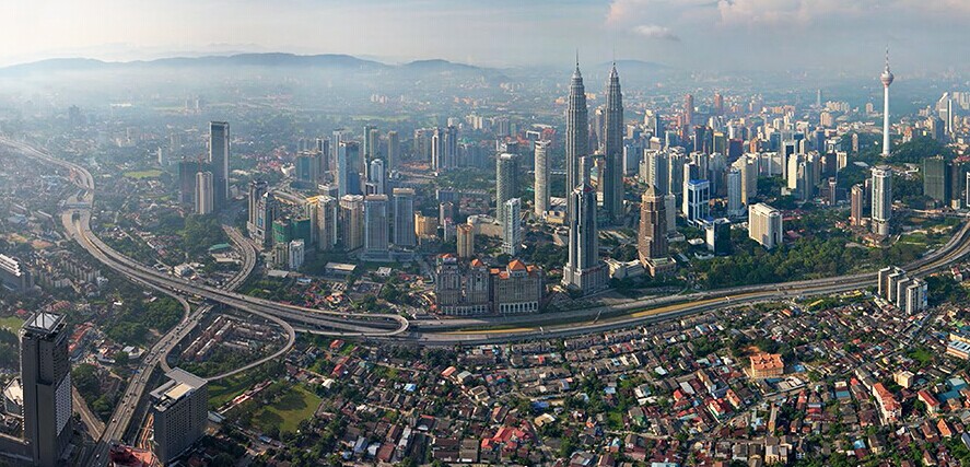 马来西亚首都吉隆坡:画面中心的吉隆坡石油双塔曾经是世界最高的摩天大楼,但仍是世界最高的双塔楼、世界第五高的大楼。