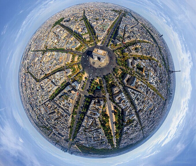 梦想之都——巴黎:摄影师用一种非常另类的角度拍摄凯旋门,随之整个城市展现出不一样的风情。