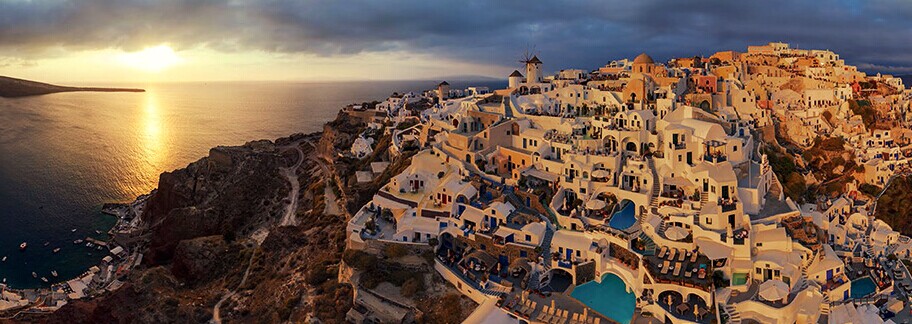 希腊最美小岛——圣托里尼:著名的旅游胜地,整个小岛没有一辆车,出行都靠骑驴,为小岛更添独特色彩。