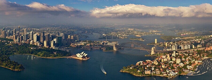 悉尼:著名的悉尼歌剧院和海港大桥尽收眼底。除外观独特,悉尼歌剧院还以建筑时间长闻名全球——上世纪60年代开始建造,到1973年才完工。