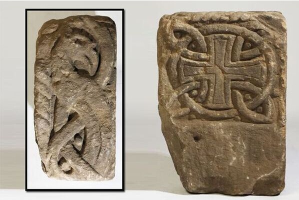 据悉,约翰在清理假山废石时,无意中发现了这块9世纪的古石雕。该石雕长约21英寸(约53厘米),宽约15英寸(约38厘米),一面刻着十字架,另一面刻着小鸟。据专家鉴定估测,该石雕很有可能是早期基督教纪念碑十字架石板中的一部分,后被反抗基督教的北欧海盗砸碎。