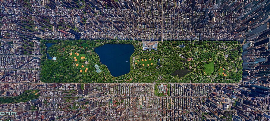 纽约:画面中的绿色区域是纽约市民闲来无事最喜欢去的中央公园,公园占地面积比摩纳哥公国都大。而环绕中央公园的高楼形成了纽约的中心城区——曼哈顿。