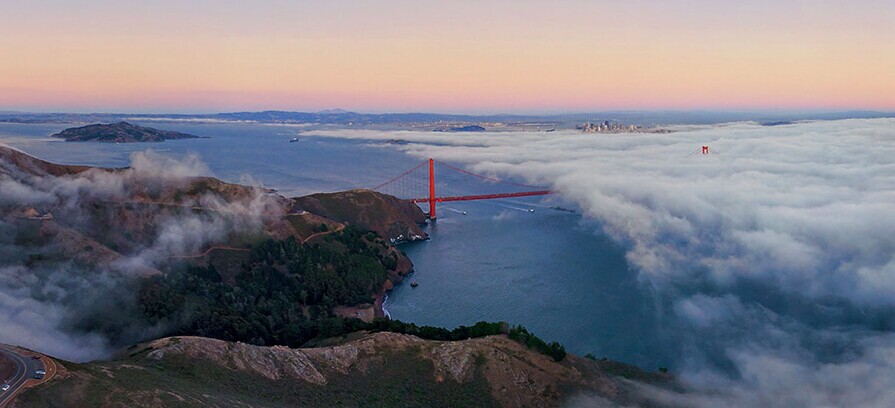 旧金山:尽管旧金山金门大桥在大部分时间都是被雾气所笼罩,但是摄影师依旧拍摄到了它的全貌。